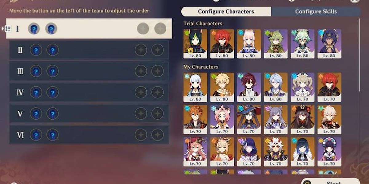 ก่อนเลือกตัวละครและบัฟพิเศษ ควรตรวจสอบศัตรูก่อน รายชื่อศัตรูพร้อมให้ตรวจสอบก่อนเริ่มการท้าทาย ดังนั้นควรตรวจสอบว่าคู่ต่อสู้คนใดจะเลือกตัวละครที่ดีที่สุดเพื่อตอบโต้และเอาชนะพวกเขาอย่างรวดเร็ว ตัวอย่างเช่น Ayaka, Eula และ Hu Tao เป็นตัวเลือกที่ดีที่สุดในการตอบโต้มอนสเตอร์ขนาดใหญ่ Klee, Xiao และ Ganyu เป็นตัวเลือกที่ดีกว่าในการเคลียร์กลุ่ม Hilichurls หรือ Treasure Hoarders